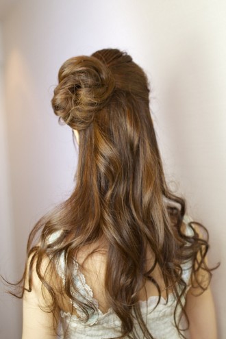 派手にしないで、サイドに大きなお花をイメージして華やかに♪清潔感とルーズさをミックス!